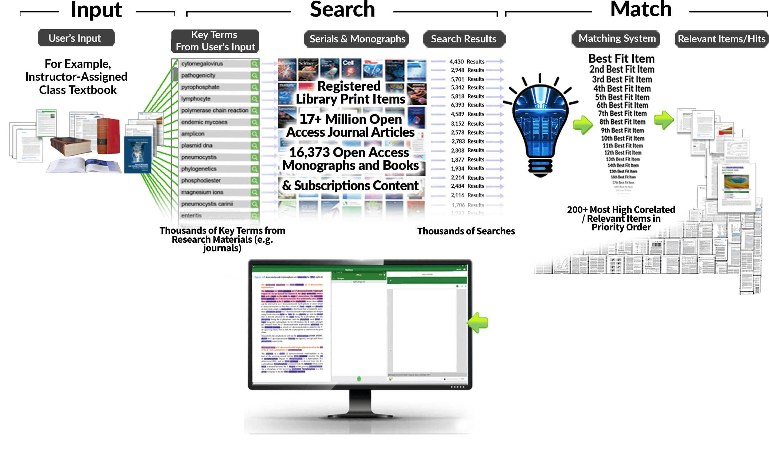 sorts those matches by relevance to the source materials. The diagram below illustrates the